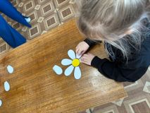 Дети собирали ромашку, выкладывая по лепестку к желтой сердцевинке. Принимали участие в викторине "Мама, папа, я - дружная семья", в пальчиковой игре "Наша семья".